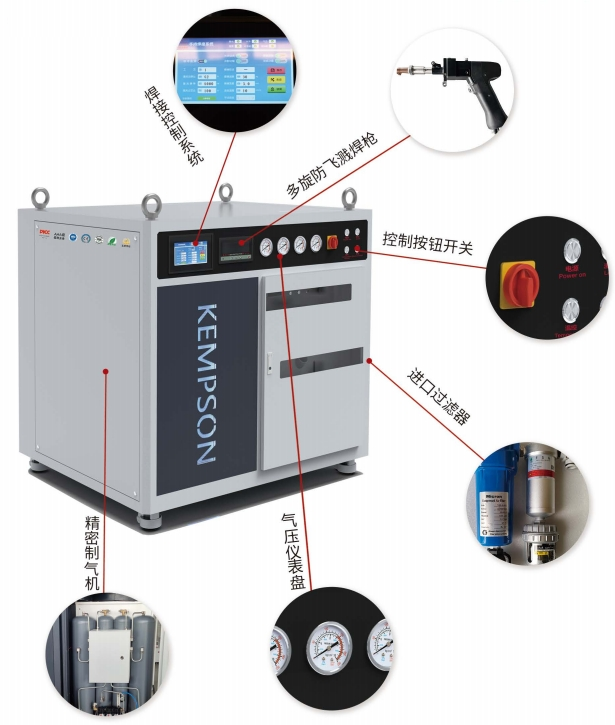 詳細信息 肯普森雙槍空氣激光焊,支持1500W雙槍定制,可供兩人同時使用。不用買氣的激光焊,自產高純度惰性保護氣,可焊接0.5-3毫米厚板材,機器選用韓國進口多級渦旋沖突分離式過濾,帶有高精密制氣機,6毫米寬焊道,單面焊雙面成型,無飛濺無需二次打磨。機器選用肯普森定制美國芯片激光器,配備氣體控制系統及氣壓儀表盤,法國施耐德電控系統,電流濾波及隔離器保護,多旋防飛焊槍性能精良,耐久使用,不用買氣的激光焊,效率高更省錢! 產品細節