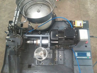 銷軸、螺栓-全自動單軸鉆孔機-振動盤送料機器原理及說明: 該機采用12等分氣動分度盤UBOST-CN-GH140CW12通過數(shù)控系統(tǒng)控制,自動旋轉分度進行旋轉工位送料,通過送料機(或振動盤為選配件)自動送料到滑道中,數(shù)控系統(tǒng)自動控制氣動鉆孔動力頭進給鉆孔;鉆孔速度及深度可由油壓緩沖器及深度絲桿調整,自動落料。 通過氣動鉆孔動力頭控制實現(xiàn)鉆孔。采用液晶屏幕數(shù)控系統(tǒng)控制,可隨意編程,存貯多個加工程序;不容易斷鉆頭,有斷鉆頭自動報警停機功能。 自動送料,自動夾緊、自動鉆孔、自動退料。四個動作由分度盤在不同工位同時完成。 銷軸、螺栓-全自動單軸鉆孔機-振動盤送料的優(yōu)點及使用范圍: 1、本機具有結構合理,操作方便安全可靠,不易斷鉆頭等特點; 2、具有沒料自動報警、停機功能(水泵、主軸、運動部件全停); 3、具有斷鉆頭自動報警、停機功能; 4、具有沒鉆孔或鉆半孔自動檢測停機、報警功能; 5、鐵削與工件自動分離; 6、鉆孔效率高,實現(xiàn)全部數(shù)控操作。一人可同時操作10臺機器,省人力省功。大幅度提高工作效率。 7、經濟實用,投入成本低; 8、本機適用于在銷軸類、螺栓類、軸類、園柱類等零件、園柱面上鉆孔;直徑及長短都可調,屬通用機型。