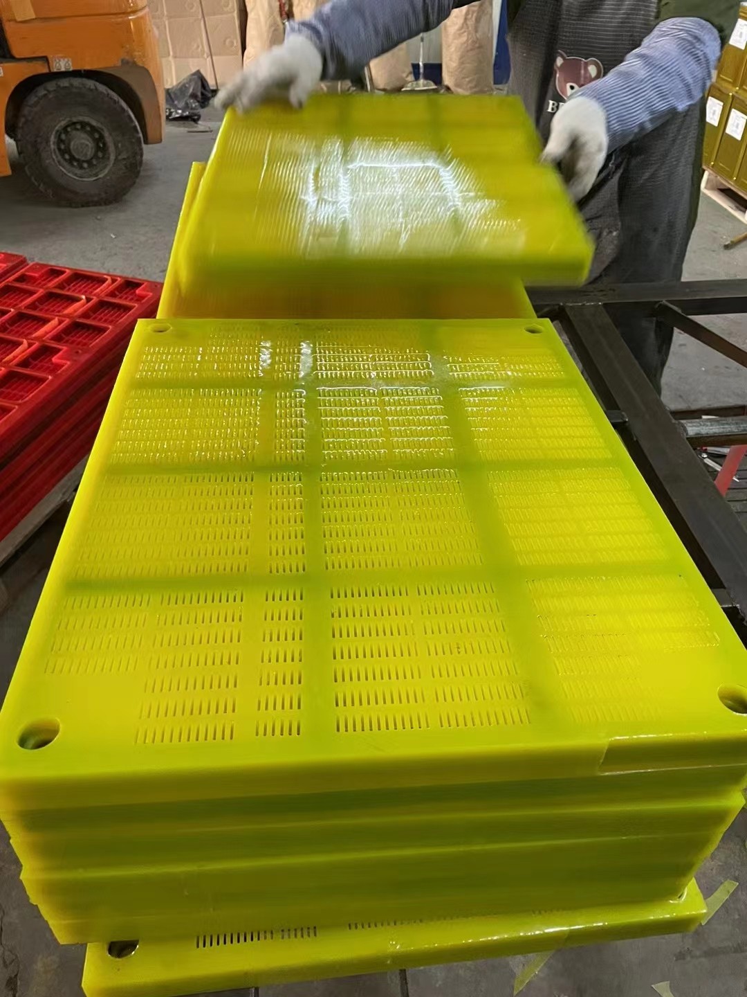 詳細(xì)信息 脫水篩板有100目、80目、60目、50目、30目等,骨架為6*25/8*25兩種,加重加寬勁,正常一年換一次篩板 ,尺寸支持定做。 聚氨酯脫水篩板分為波浪型 和條縫型。