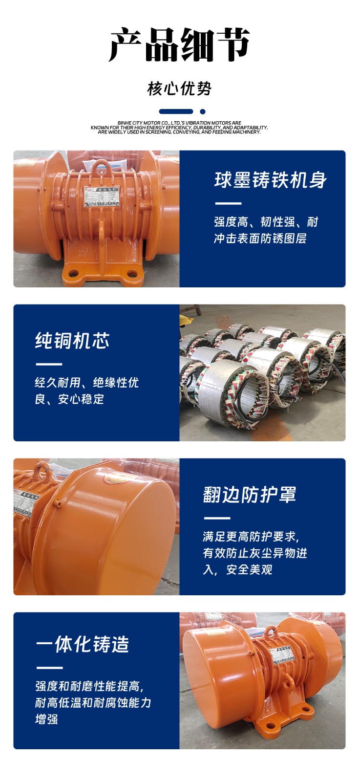 詳細信息 YZO系列臥式振動電機是一種廣泛應用于工業領域的振動設備驅動源。它們特別適用于振動篩分機,用于實現物料的篩分、分級、過濾等操作。YZO系列振動電機的設計特點包括高效率、穩定的振幅、低噪音運行以及全封閉結構,這些特點使得它們能夠在各種無防爆要求的粉塵環境中安全工作. 在振動篩分機中,YZO系列振動電機通過產生可控的振動來促進物料在篩面上的移動,從而實現有效的篩分過程。這種振動篩分機廣泛應用于多個行業,包括但不限于電力、建材、糧食、煤炭、礦山、冶金、化工、鑄造等.
