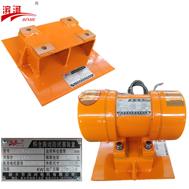 LZF防閉塞裝置結(jié)構(gòu)及工作原理: 結(jié)構(gòu)如圖所示。由振動(dòng)電機(jī)(1),底座(2)兩部分組成。振動(dòng)電機(jī)和底座由螺栓緊密地固定為一體。由于底座緊固地安裝在料倉(cāng)壁上,這樣就構(gòu)成了單質(zhì)點(diǎn)定向強(qiáng)迫振動(dòng)系統(tǒng)。 LZF型料倉(cāng)振動(dòng)防閉寒裝置采用電機(jī)作為激振源。當(dāng)LZF系列防閉塞裝置工作時(shí),振動(dòng)電機(jī)的高速轉(zhuǎn)動(dòng),便產(chǎn)生了對(duì)料倉(cāng)壁的周期性高頻振動(dòng),由于防閉塞裝置的周期性振動(dòng),一方面使物料與倉(cāng)壁脫離接觸、消除物料與倉(cāng)壁的摩擦,另一方面使物料受交變速度和加速度的影響,處于不穩(wěn)定狀態(tài),從而有效地克服物料的內(nèi)摩擦力和聚集力,以消除料倉(cāng)內(nèi)物料間的相對(duì)穩(wěn)定性,使物料從料倉(cāng)口順利排出。