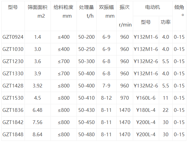 詳細(xì)信息 特點 GZT系列棒條式振動給料機(jī)共有五個規(guī)格,適用于破碎機(jī)前大塊物料的均勻給料。特別適合于黑色或有色金屬礦石、建筑石料粗碎前的給料用。該系列給料機(jī),由于在接近排料端的給料面布有分級作用縫隙可調(diào)的棒條,所以在進(jìn)行給料同時能將物料中泥土及細(xì)碎粒級的物料分離出去,使其后面的破碎機(jī)更有效發(fā)揮功能;該系列給料機(jī)采用消化引進(jìn)美國枝術(shù)制造的振動器、框架式環(huán)槽鉚釘聯(lián)接結(jié)構(gòu).又采用錳鋼制造的護(hù)板和棒條,結(jié)構(gòu)堅固、強(qiáng)度高、耐沖擊、耐磨損。 用途及特點 GZT系列棒條式振動給料機(jī)是一種新型給料機(jī),在生產(chǎn)過程中,可把塊狀、顆粒狀物料從貯料倉中均勻、定時、連續(xù)給到受料裝置中,在砂石生產(chǎn)線中可為破碎機(jī)械連續(xù)均勻地喂料,并對物料進(jìn)行粗篩分,廣泛用于冶金、礦山、電力、建材、化工、機(jī)械等行業(yè)的破碎、篩分聯(lián)合作業(yè)中。 工作原理及結(jié)構(gòu)特點 GZT系列振動給料機(jī)新型振動電機(jī)驅(qū)動,該系列振動給料機(jī)用于粗破碎機(jī)前的均勻給料,同時由于棒條篩面的作用,又能除掉泥土等細(xì)小物料,達(dá)到預(yù)先篩分的功能,能夠提高粗碎能力,該系列振動給料機(jī)新型振動電機(jī)或激振器激振,框架式環(huán)槽鉚釘鉚接,錳鋼制造的護(hù)板和棒條,結(jié)構(gòu)堅固,強(qiáng)度高,耐沖擊,耐磨損,使用維護(hù)方便。 型號說明