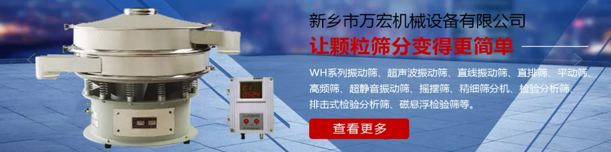 新鄉市萬宏機械設備有限公司是國內設計、生產各類振動篩的專業廠家之一。主要產品有WH系列振動篩、超聲波振動篩、直線振動篩、旋振篩、粉末冶金振動篩、電池材料振動篩、醫藥振動篩、硬質合金振動篩、食品振動篩、圓振動篩、試驗篩、檢驗分析篩、拍擊式標準檢驗篩、振動電機、環保振動篩、螺旋輸送機、斗式提升機、垂直提升機等。產品廣泛用于食品業、化學合成業、塑膠業、樹脂業、中西藥業、油漆涂料業、磨料行業、陶瓷業、金屬粉末礦冶業、電子磁性材料業、造紙業、環保業...等需要用到篩分設備的行業。 新鄉市萬宏機械設備有限公司企業宗旨:客戶、質量、信譽。公司可根據客戶需求特殊設計制作各種振動篩、超聲波振動篩、粉末冶金振動篩、電池材料振動篩、直線振動篩等,我們將以優質的產品,先進的生產工藝,完善的售后服務歡迎廣大客戶光臨洽談合作。 [詳細介紹]