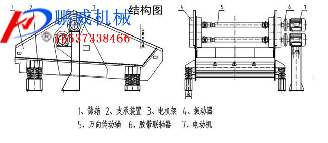 支撐裝置(底座和減振裝置)、篩箱、振動電機組成。