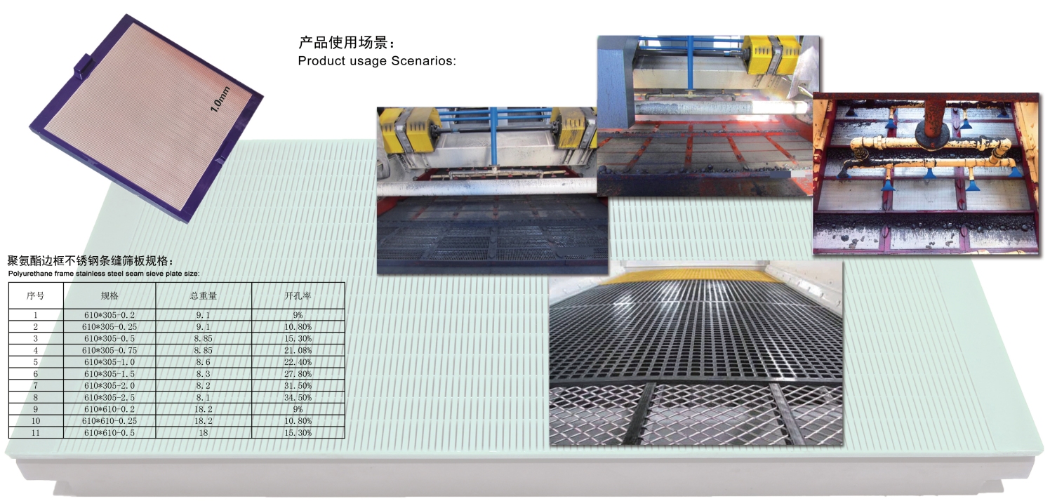 聚氨酯邊框不銹鋼條縫篩板