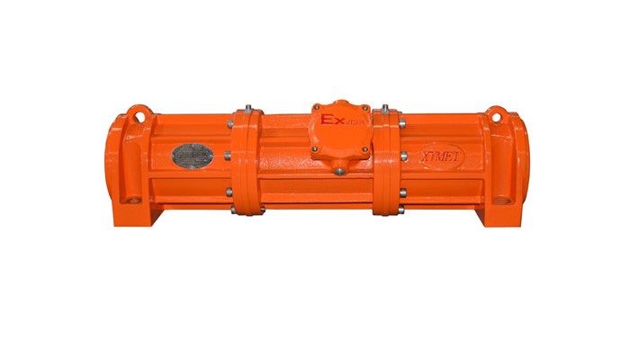 VLBL系列法蘭式隔爆振動電機設計成細長結構,激振力作用點距離(地腳孔的距離)特寬,尤其適用于寬距離處傳遞激振力的場合,廣泛用作石油行業泥漿分離篩激振源。泥漿分離篩裝配此類振動電機,運行更平穩,構件受力更均勻,有效延長其使用壽命。VLBL系列產品可單獨使用,亦可組合使用。其防爆性能符合GB3836.2-2000《爆炸性氣體環境用電氣設備第二部分:隔爆型“d”》的規定,防爆標志為dIIBT4,適用于II類A、B級T4組別可燃性氣體或蒸汽與空氣形成的爆炸性混合物的場所。