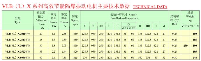 VLBL系列法蘭式隔爆振動電機,功率1.3~2.4KW,4極,激振力為25~50KN,共計4個規格,廣泛應用于油田、礦山、化工等行業。