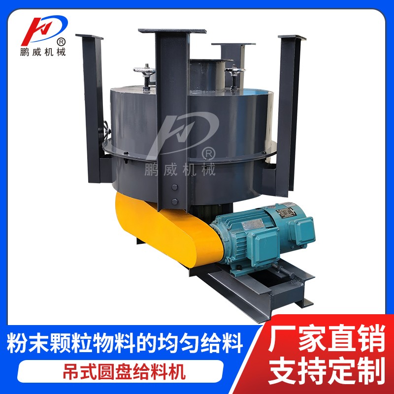 吊式圓盤給料機(jī)是一種使用廣泛的連續(xù)式容積加料設(shè)備,能均勻連續(xù)地將物料喂送到下一設(shè)備中,喂料量可以調(diào)節(jié),可喂送粉狀、小塊狀的物料(如煤粉、粘土等),是一般磨機(jī)、烘干機(jī)的常用配套設(shè)備。