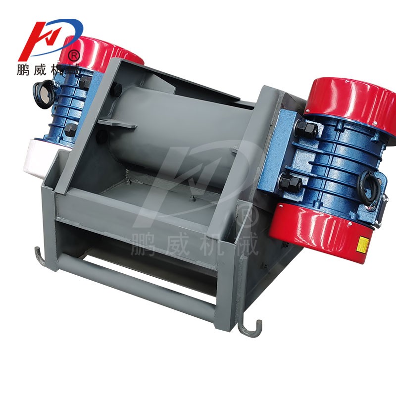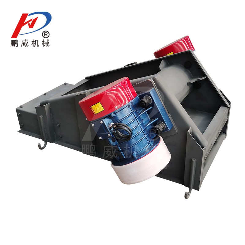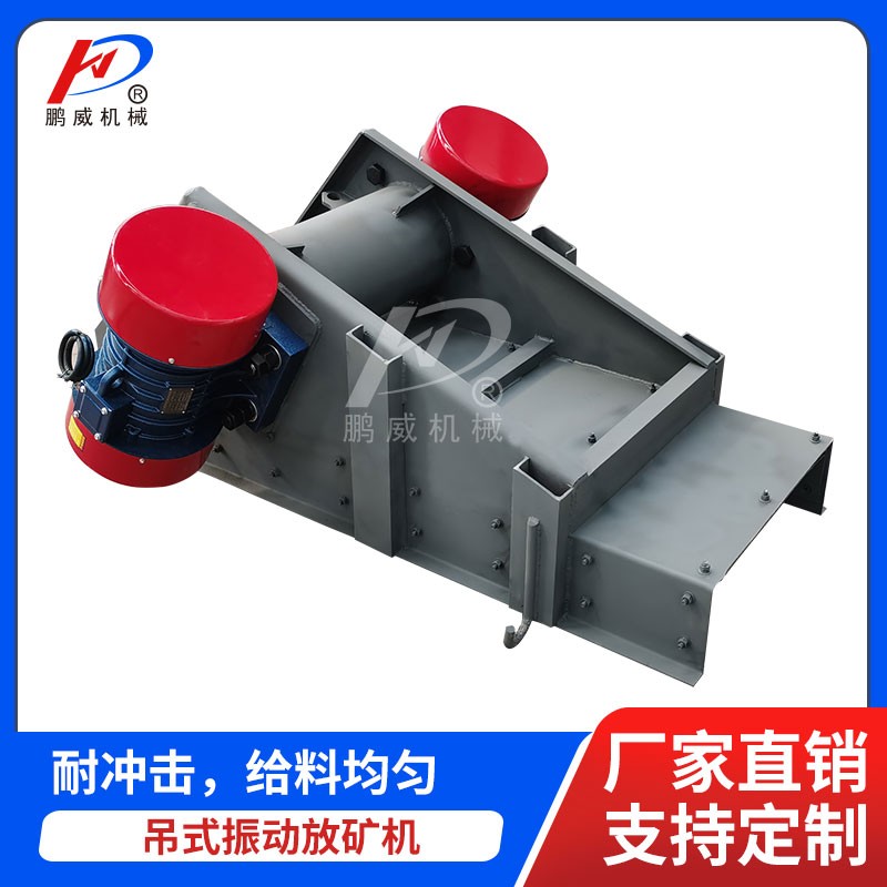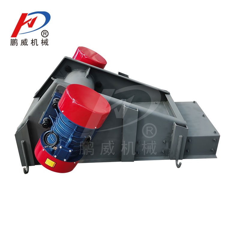 振動給礦機是以振動電機為動力源,利用安裝在振動電機主軸兩端的偏心塊在旋轉運動中所產生的離心力來得到激振力,驅使振動放礦機臺面和物料做周期直線往復振動,