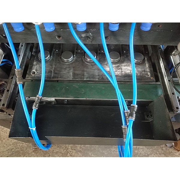 油桶蓋-4工位氣密性在線檢測機(jī)出料出與點(diǎn)焊機(jī)的入料輸送帶口相連接。