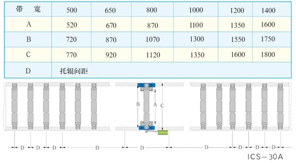 ISC-30A型電子皮帶秤,該秤架為全懸浮式結(jié)構(gòu),無耳軸支點,采用了二只壓傳感器,可有效解決偏載的問題。該秤架主要安裝在進出料口中心距較短的給料機上,也可安裝在傾角隨時變化的皮帶輸送機上。