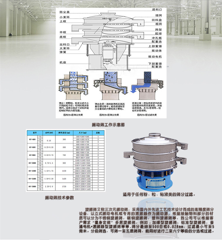 標準篩又稱旋振篩,也被稱之為三次元振動篩,采用國內外先進工藝技術設計而成的高精度篩分設備,以立式振動電機或專用的激振器作為振動源,根據接觸物料部分的材質可以分為不銹鋼旋振篩,碳鋼旋振篩,塑料旋振篩等,我公司可以根據客戶需求“量身定做” 多層旋振篩,例如:加緣型旋振篩,標準型旋振篩,普通電機,激振器型旋振篩等等。篩分細至500目或0.028mm,過濾小可至5微米。分級篩選,可篩一至五層篩網,能同時進行二至六個等級的分選或過濾。