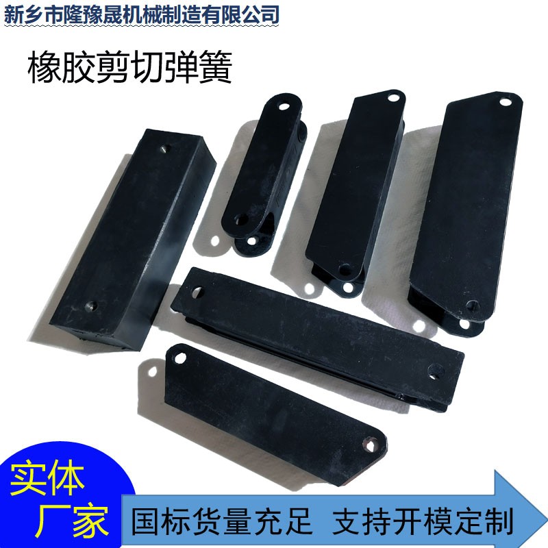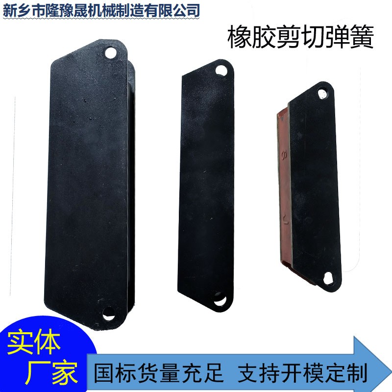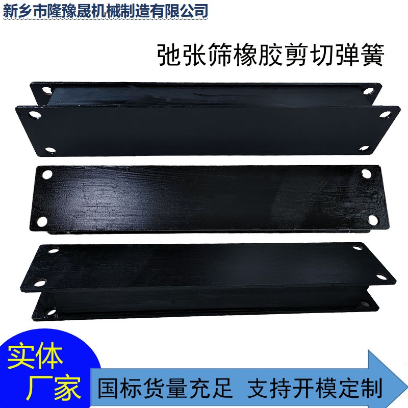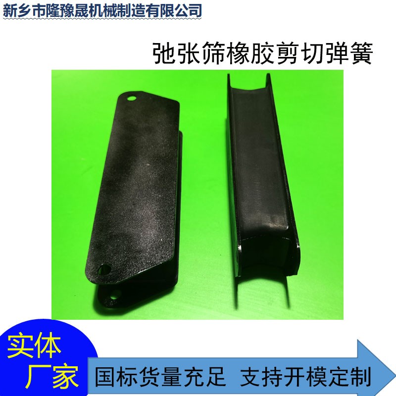 也叫鋼板夾層橡膠減震器,用于高頻振動設備,在直線型振動篩中,篩機由激振器帶動做一定振幅的振動,頻率較快,容易引起支撐體共振,且由于支撐彈簧容易損壞,這是就需要剪切彈簧來連接篩箱和支撐體。