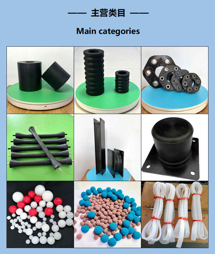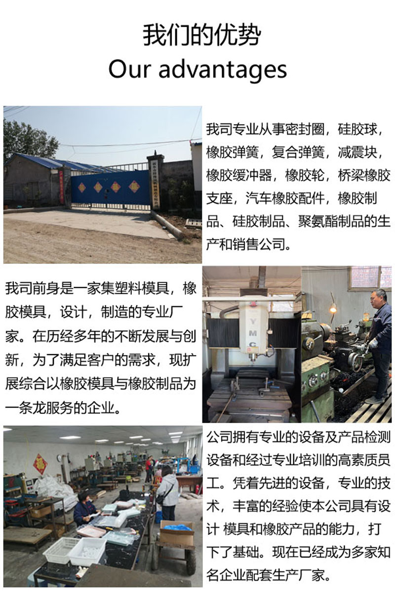 公司的主要產品包括:橡膠彈簧,復合彈簧,橡膠緩沖器,橡膠防塵套,橋梁橡膠支座,汽車橡膠配件,橡膠球,橡膠輥,橡膠氣囊,密封圈,聚氨酯篩板等各種橡膠制品。