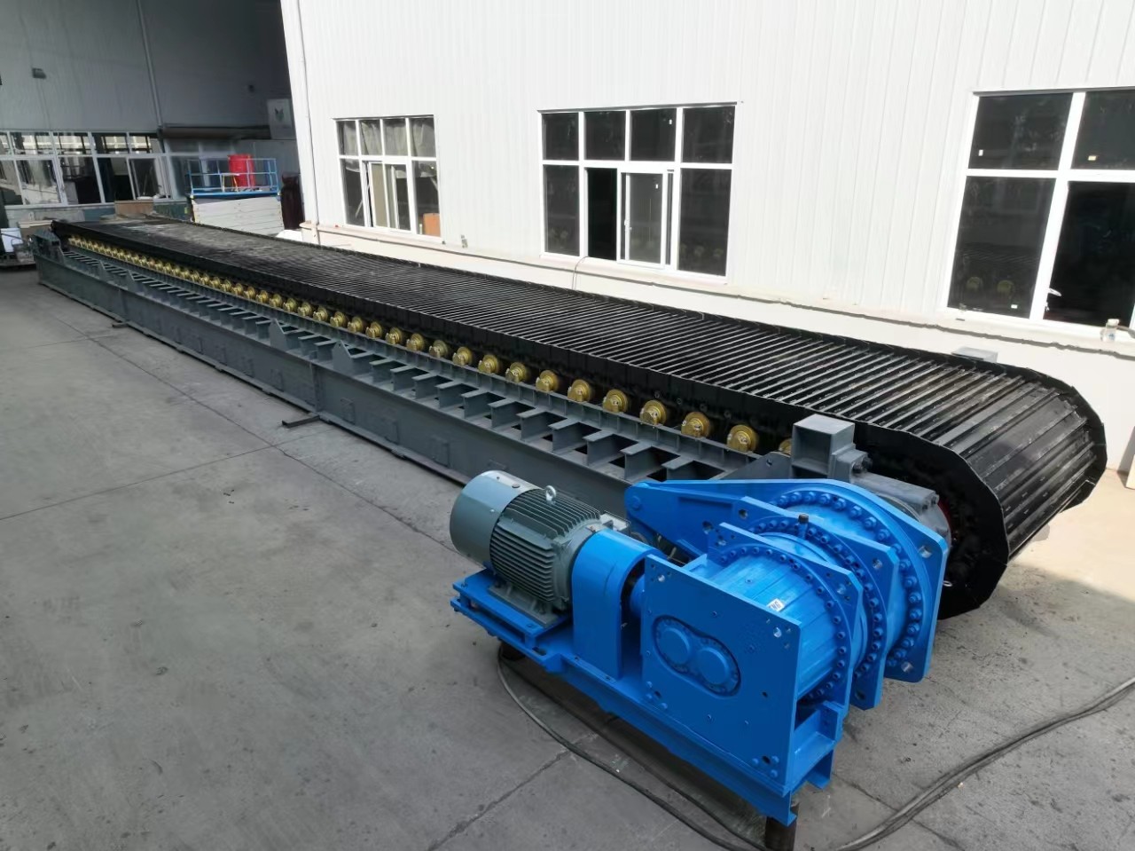 應用范圍:板式輸送機被廣泛用于建材、冶金、電力、煤炭、化工、鑄造等行業中,特別適宜于輸送一些溫度高、塊度大、具有鋒利棱角和磨琢性強的固體物料。在水泥行業中,是立窯窯尾熟料輸送的最佳選擇。