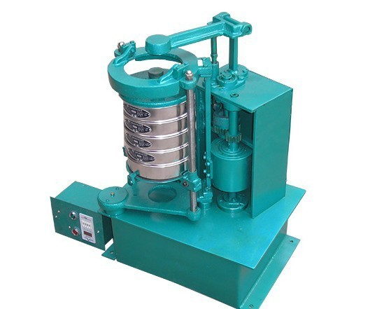 拍擊式振動篩電機通過同步帶動齒輪變速后使主軸轉動,主軸帶動偏心輪使滑板帶動設備做往復運動,同時帶動頂桿轉動,頂擊拍錘,在往復運動中拍錘拍擊篩框,小于篩孔的物料輕松即可通過篩網,大于篩孔的物料將留在篩網上層,通過拍擊原理而完成的篩分作業過程。拍擊篩分機是實險室中針對粘性、潮濕的物料最佳的實驗測量設備。