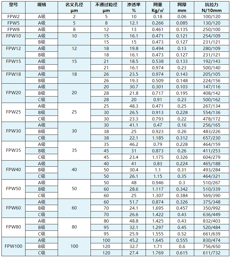 高效密紋網(wǎng)規(guī)格及參數(shù)