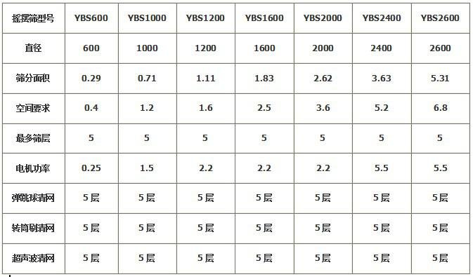 LS-YBS型圓形搖擺篩技術參數: