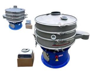 YZ系列超聲波振動篩是將220V、50HZ或110V、60HZ電能轉化為18KHZ的高頻電能,輸入超聲換能器,將其變成18KHZ機械振動,從而達到高效篩分和清網的目的,使超微細粉篩分成為易事。