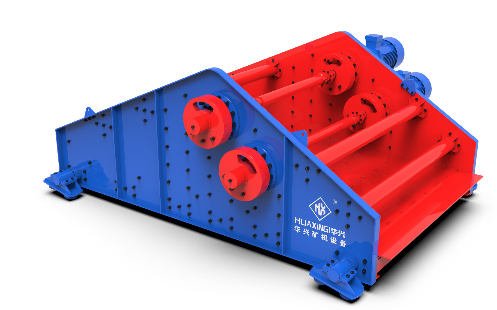 直線振動(dòng)脫水篩采用雙振動(dòng)電機(jī)驅(qū)動(dòng)(雙軸為偏心軸式電機(jī)驅(qū)動(dòng)),當(dāng)兩臺(tái)振動(dòng)電機(jī)做同步,反向旋轉(zhuǎn)時(shí),其偏心塊所產(chǎn)生的的激振力在平行于電機(jī)軸線的方向相互抵消,在垂直于電機(jī)軸的方向疊為一合力,從而使脫水篩的運(yùn)動(dòng)軌跡為直線。其兩電機(jī)軸相對(duì)篩面有一傾角,在激振力和物料自重力下,物料在篩面上被拋起跳躍式向前直線運(yùn)動(dòng),從而達(dá)到對(duì)物料進(jìn)行篩分和分級(jí)的目的。