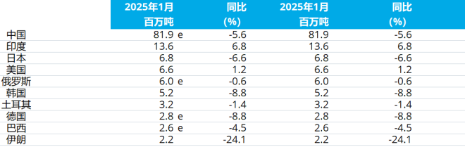 2025年1月全球粗鋼產(chǎn)量
