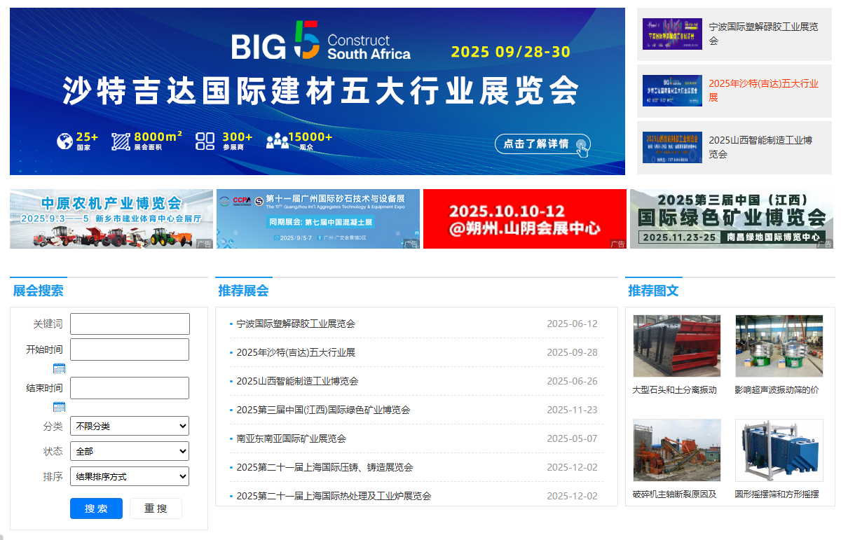 在振動(dòng)機(jī)械行業(yè)飛速發(fā)展的當(dāng)下,行業(yè)展會(huì)作為技術(shù)交流、產(chǎn)品展示、合作洽談的重要平臺(tái),承載著無(wú)限商機(jī)。振盟云易購(gòu)(www.ikrout.com)緊跟行業(yè)步伐,精心打造的行業(yè)展會(huì)界面,就像一把打開(kāi)行業(yè)新世界大門的鑰匙,為用戶帶來(lái)前所未有的展會(huì)體驗(yàn)與價(jià)值。