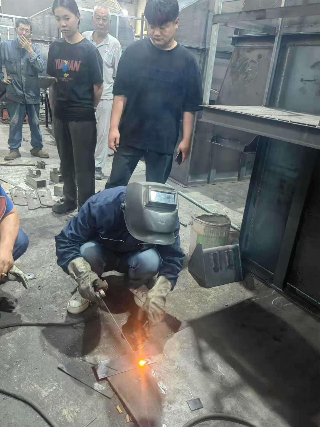 為了模擬真實生產場景,設置了平焊、立焊、角接等多種常見接頭形式。針對學員們操作中的共性問題,專家們還會隨時叫停,集中進行 “糾錯式教學”—— 從焊接電流與電壓的匹配,到焊條角度的調整,再到層間清理的技巧,每一個細節都講解到位。