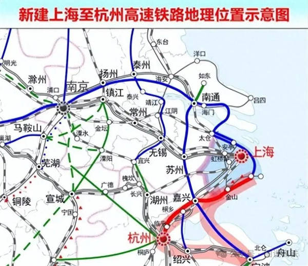 新滬杭高鐵前身是滬乍杭高鐵,最大的變化就是取消了乍浦作為節點。2025年8月,新滬杭高鐵迎來關鍵進展《環境影響報告書》上報前公示完成,項目離開工僅一步之遙。線路全長約224公里(上海段54公里、浙江段143公里),設計時速350公里,總投資672.55億元,計劃2025年底開工,2029年建成。