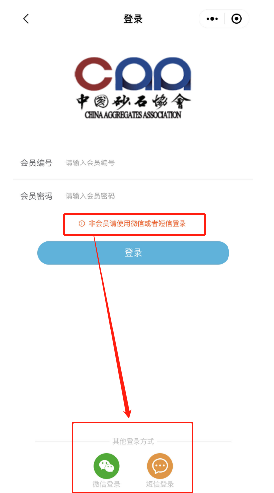(2)非會員進入小程序后選擇微信或短信登錄,報名參會。