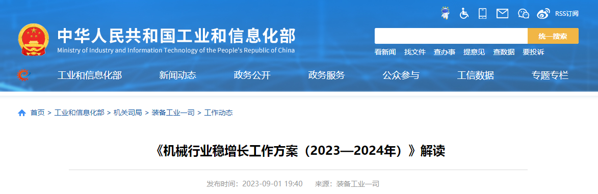 近日,工業(yè)和信息化部聯(lián)合財政部、農(nóng)業(yè)農(nóng)村部、商務部、海關總署、金融監(jiān)管總局、國家藥監(jiān)局6個部門印發(fā)《機械行業(yè)穩(wěn)增長工作方案(2023—2024年)》(工信部聯(lián)通裝﹝2023﹞144號,以下簡稱《工作方案》)。為便于理解《工作方案》,做好貫徹實施工作,現(xiàn)將有關內(nèi)容解讀如下: