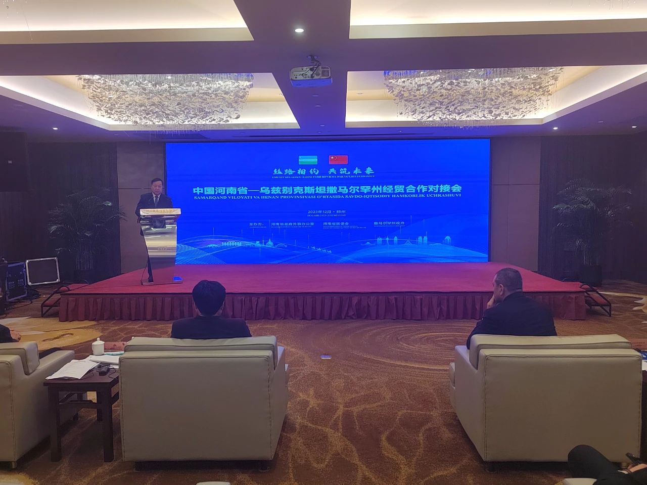 烏茲別克斯坦撒馬爾罕州副州長科比洛夫(Kobilov Rustam)12月7日至9日率經貿代表團一行28人訪問河南省,并于12月8日上午在鄭州舉辦企業經貿對接會。為進一步加強新鄉市與烏茲別克斯坦經貿往來與投資合作水平,市委常委、市政府副市長祁文華帶領市貿促會和新鄉市職業技術學院、新鄉市振動機械行業協會以及新鄉化纖、河南心連心、衛華重工等19家企業參加河南省—烏茲別克斯坦撒馬爾罕州交流合作對接會。