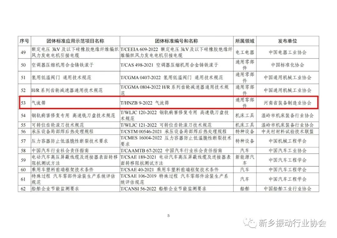 近日,我們欣然宣布,由振動(dòng)協(xié)會(huì)參與、高服機(jī)械牽頭制定的《氣流篩》團(tuán)體標(biāo)準(zhǔn)成功入選2023年工信部百項(xiàng)團(tuán)體標(biāo)準(zhǔn)應(yīng)用示范百?gòu)?qiáng)。這是一項(xiàng)極為重要的榮譽(yù),也是對(duì)我們團(tuán)隊(duì)專業(yè)能力和不懈努力的充分肯定。
