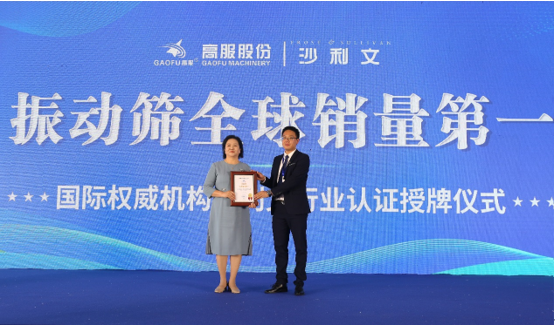 5月17日,中原農谷第二屆振動機械產業博覽會上進行一項重要的授牌儀式,弗若斯特沙利文(Frost & Sullivan)為新鄉市高服機械股份有限公司(簡稱:高服機械)頒發“振動篩全球銷售第一”的市場地位確認證書,這一殊榮彰顯了高服機械在全球振動篩領域的卓越成就。