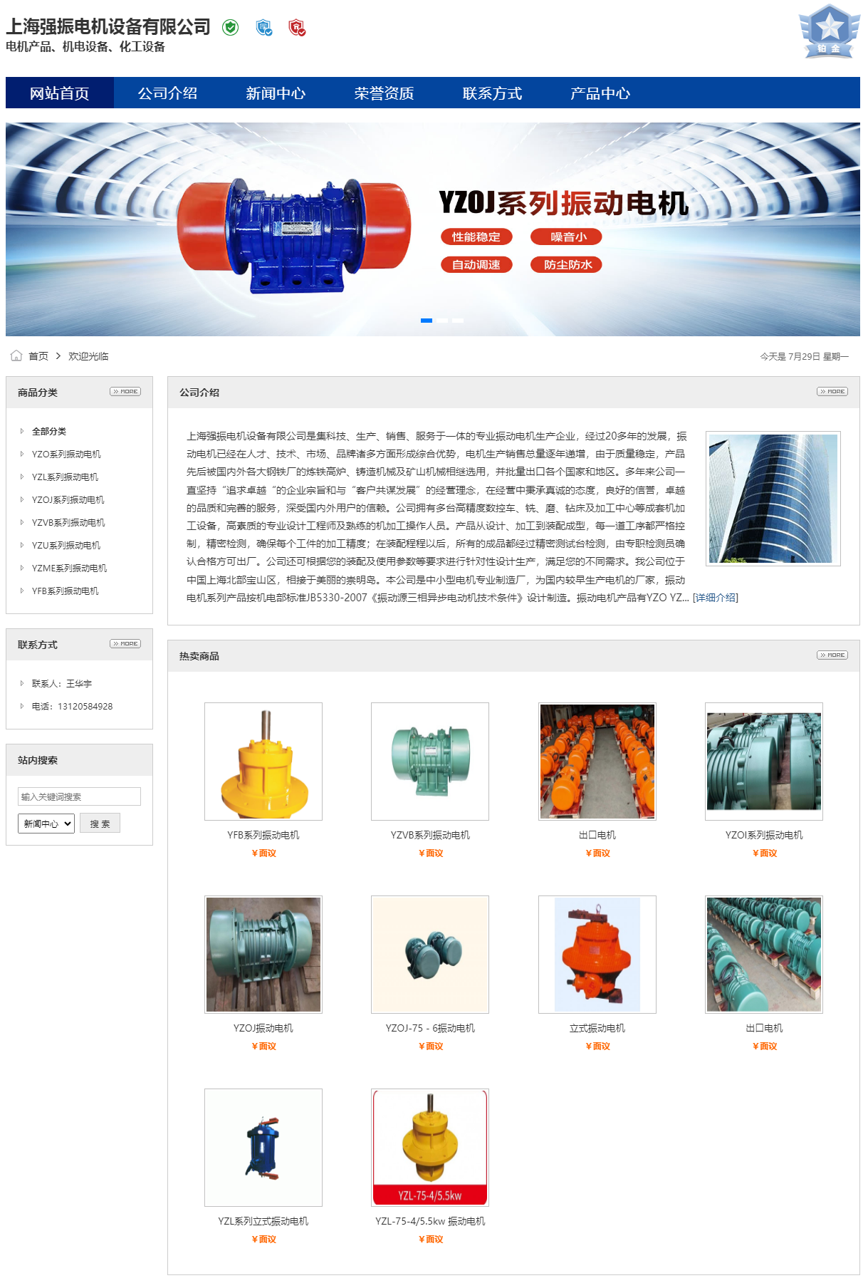 上海強振電機設(shè)備有限公司是集科技、生產(chǎn)、銷售、服務(wù)于一體的專業(yè)振動電機生產(chǎn)企業(yè),經(jīng)過20多年的發(fā)展,振動電機已經(jīng)在人才、技術(shù)、市場、品牌諸多方面形成綜合優(yōu)勢,電機生產(chǎn)銷售總量逐年遞增,由于質(zhì)量穩(wěn)定,產(chǎn)品先后被國內(nèi)外各大鋼鐵廠的煉鐵高爐、鑄造機械及礦山機械相繼選用,并批量出口各個國家和地區(qū)。多年來公司一直堅持“追求卓越“的企業(yè)宗旨和與“客戶共謀發(fā)展”的經(jīng)營理念,在經(jīng)營中秉承真誠的態(tài)度,良好的信譽,卓越的品質(zhì)和完善的服務(wù),深受國內(nèi)外用戶的信賴。公司擁有多臺高精度數(shù)控車、銑、磨、鉆床及加工中心等成套機加工設(shè)備,高素質(zhì)的專業(yè)設(shè)計工程師及熟練的機加工操作人員。產(chǎn)品從設(shè)計、加工到裝配成型,每一道工序都嚴格控制,精密檢測,確保每個工件的加工精度;在裝配程程以后,所有的成品都經(jīng)過精密測試臺檢測,由專職檢測員確認合格方可出廠。公司還可根據(jù)您的裝配及使用參數(shù)等要求進行針對性設(shè)計生產(chǎn),滿足您的不同需求。