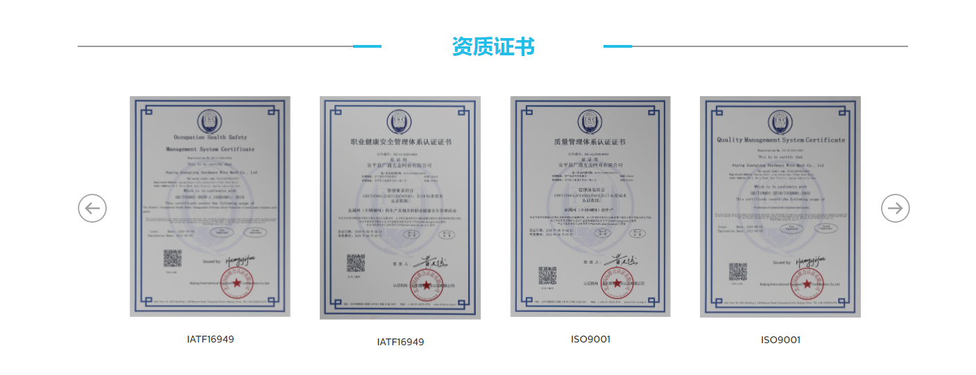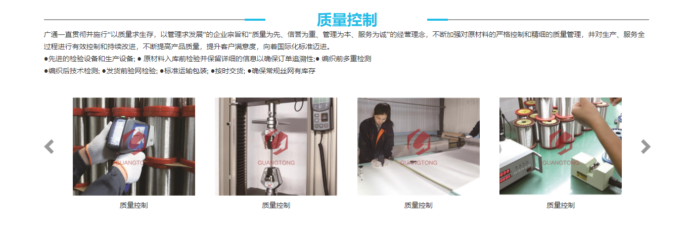 安平縣廣通五金網(wǎng)業(yè)有限公司位于 命名和中外聞名的“中國絲網(wǎng)之鄉(xiāng)”、“中國絲網(wǎng)生產(chǎn)基地”一一一河北省安平縣,距北京首都機(jī)場250公里,距天津港200公里,地理位置十分優(yōu)越。廣通 生產(chǎn)不銹鋼過濾網(wǎng)、銅網(wǎng)、鐵網(wǎng)、汽液過濾網(wǎng)及各種網(wǎng)片、絲網(wǎng)深加工、濾芯產(chǎn)品。產(chǎn)品適用于多個領(lǐng)域,如:石油分離過濾、除霧及技術(shù)分離、氣液過濾、減震器、消音、密封、隔熱、電磁干擾屏敲裝置等。同時,我們的產(chǎn)品也廣泛應(yīng)用于各個行業(yè),如石油化工業(yè)、汽車工業(yè),電子工業(yè)、飛機(jī)船舶制造業(yè)、軍工業(yè)、醫(yī)學(xué)、新能源、試驗設(shè)備及輔助設(shè)備等。我們遵循“創(chuàng)業(yè),樹人,精品,誠信”的經(jīng)營理念,建立了一整套行之有效的從原材料采購,生產(chǎn)制造,檢測控制,包裝運(yùn)輸?shù)绞酆蠓?wù)全過程完善的 。正因我公司具有了齊全的檢測設(shè)備,完善的檢測手段,高素質(zhì)合格的檢測人員,使得我們的生產(chǎn)各項性能優(yōu)良,因而我公司產(chǎn)品暢銷全國各地,并遠(yuǎn)銷歐美、日本,韓國、澳大利亞、中東、非洲及東南亞等地區(qū),我們真誠的希望與國內(nèi)外客商真誠合作,互惠互利,建立良好的業(yè)務(wù)貿(mào)易關(guān)系,并通過我們誠信的合作,彼此留下美好的印象,共鑄事業(yè)輝煌