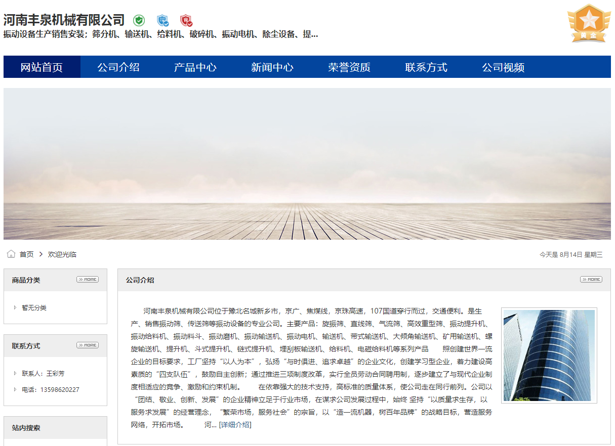 河南豐泉機械有限公司位于豫北名城新鄉市,京廣、焦煤線,京珠高速,107國道穿行而過,交通便利。是生產、銷售振動篩、傳送篩等振動設備的專業公司。主要產品:旋振篩、直線篩、氣流篩、高效重型篩、振動提升機、振動給料機、振動料斗、振動磨機、振動輸送機、振動電機、輸送機、帶式輸送機、大傾角輸送機、礦用輸送機、螺旋輸送機、提升機、斗式提升機、鏈式提升機、埋刮板輸送機、給料機、電磁給料機等系列產品