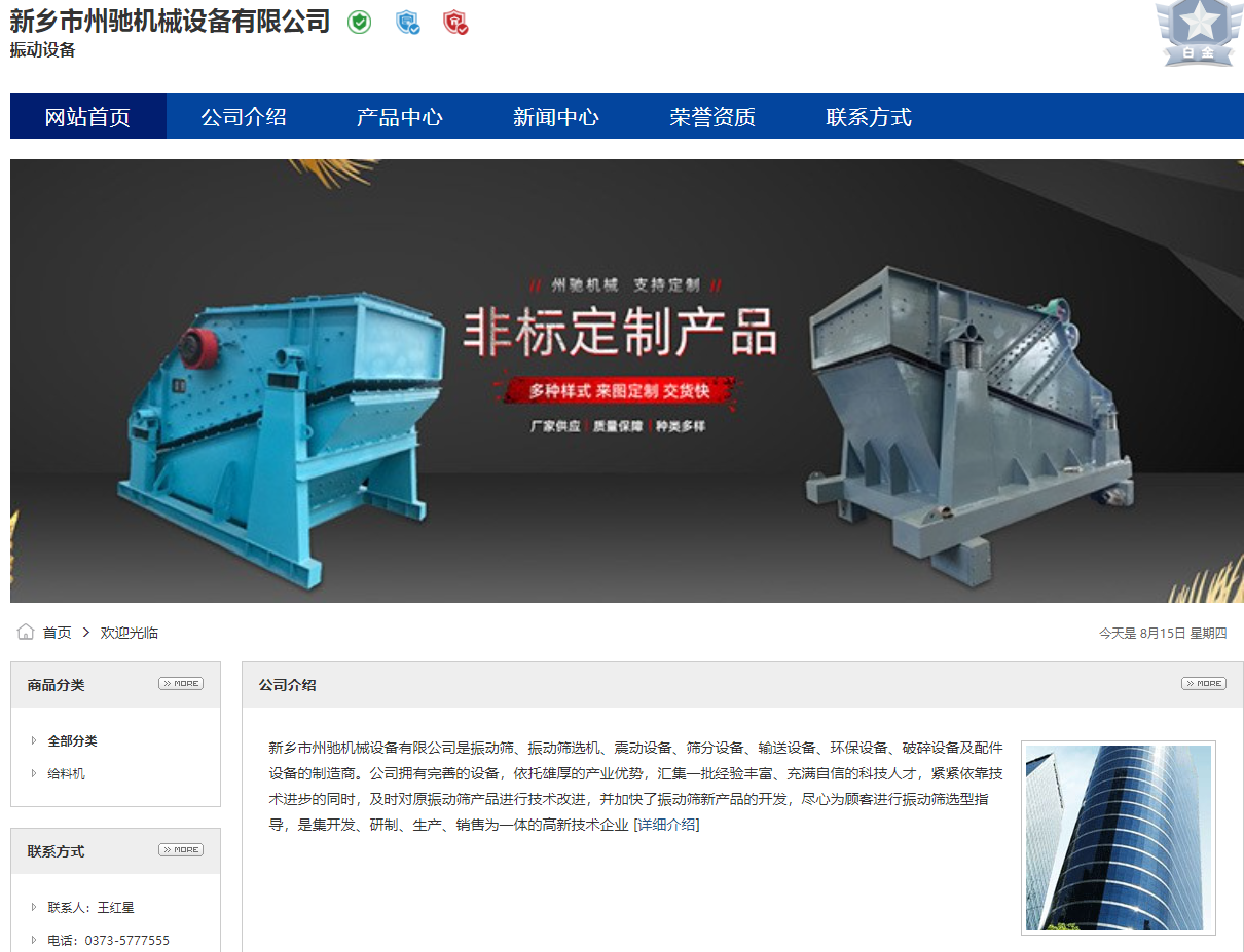 新鄉(xiāng)市州馳機械設(shè)備有限公司是振動篩、振動篩選機、震動設(shè)備、篩分設(shè)備、輸送設(shè)備、環(huán)保設(shè)備、破碎設(shè)備及配件設(shè)備的制造商。公司擁有完善的設(shè)備,依托雄厚的產(chǎn)業(yè)優(yōu)勢,匯集一批經(jīng)驗豐富、充滿自信的科技人才,緊緊依靠技術(shù)進步的同時,及時對原振動篩產(chǎn)品進行技術(shù)改進,并加快了振動篩新產(chǎn)品的開發(fā),盡心為顧客進行振動篩選型指導(dǎo),是集開發(fā)、研制、生產(chǎn)、銷售為一體的高新技術(shù)企業(yè)