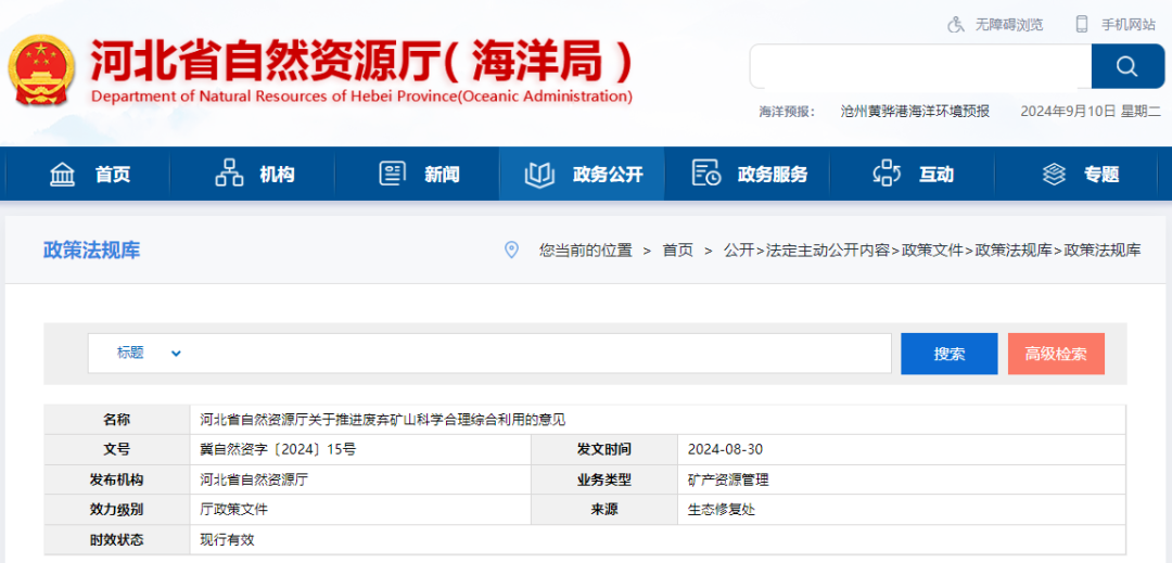 為了促進(jìn)礦山生態(tài)修復(fù)規(guī)范有序開(kāi)展,進(jìn)一步推進(jìn)廢棄礦山綜合利用,提高全省廢棄礦山生態(tài)修復(fù)成效,發(fā)揮廢棄礦山修復(fù)后的長(zhǎng)期效益。近日,河北省自然資源廳發(fā)布關(guān)于推進(jìn)廢棄礦山科學(xué)合理綜合利用的意見(jiàn)(以下簡(jiǎn)稱《意見(jiàn)》)。《意見(jiàn)》從空間布局優(yōu)化、產(chǎn)權(quán)激勵(lì)、指標(biāo)使用、資源利用、金融扶持等五方面細(xì)化明確了11項(xiàng)具體支持政策。