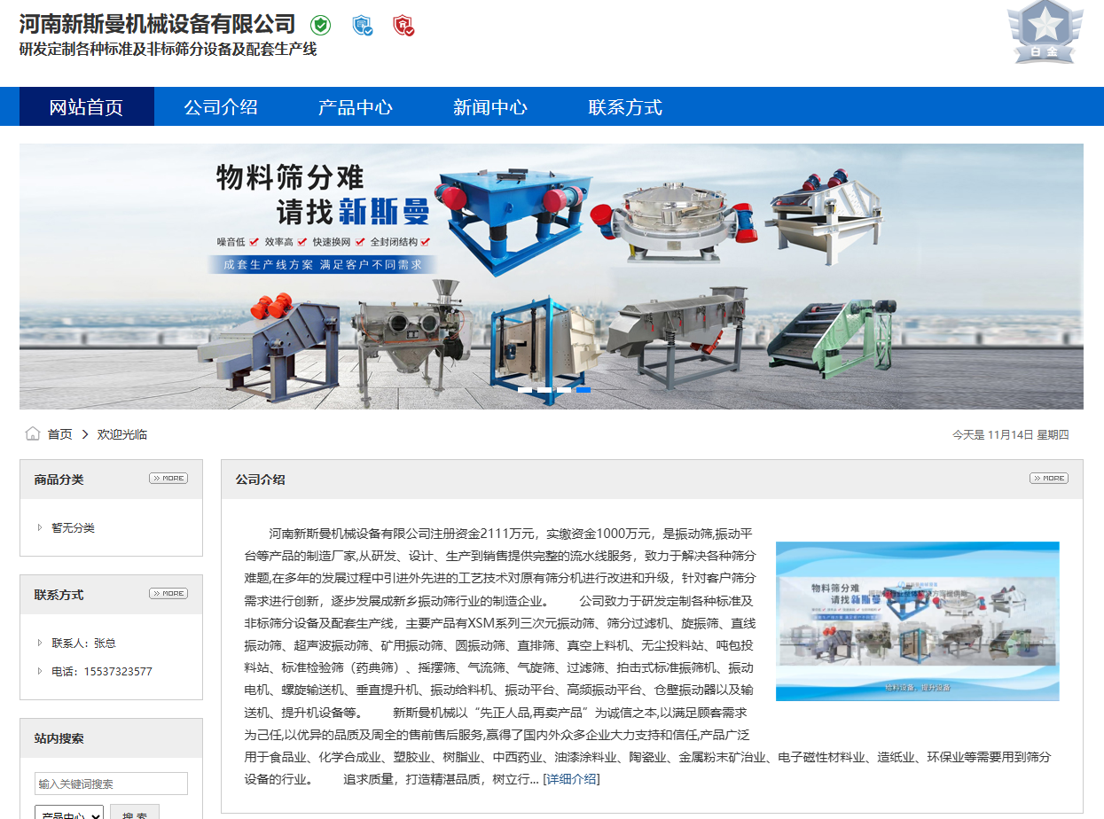 公司致力于研發(fā)定制各種標(biāo)準(zhǔn)及非標(biāo)篩分設(shè)備及配套生產(chǎn)線,主要產(chǎn)品有XSM系列三次元振動(dòng)篩、篩分過(guò)濾機(jī)、旋振篩、直線振動(dòng)篩、超聲波振動(dòng)篩、礦用振動(dòng)篩、圓振動(dòng)篩、直排篩、真空上料機(jī)、無(wú)塵投料站、噸包投料站、標(biāo)準(zhǔn)檢驗(yàn)篩(藥典篩)、搖擺篩、氣流篩、氣旋篩、過(guò)濾篩、拍擊式標(biāo)準(zhǔn)振篩機(jī)、振動(dòng)電機(jī)、螺旋輸送機(jī)、垂直提升機(jī)、振動(dòng)給料機(jī)、振動(dòng)平臺(tái)、高頻振動(dòng)平臺(tái)、倉(cāng)壁振動(dòng)器以及輸送機(jī)、提升機(jī)設(shè)備等。
