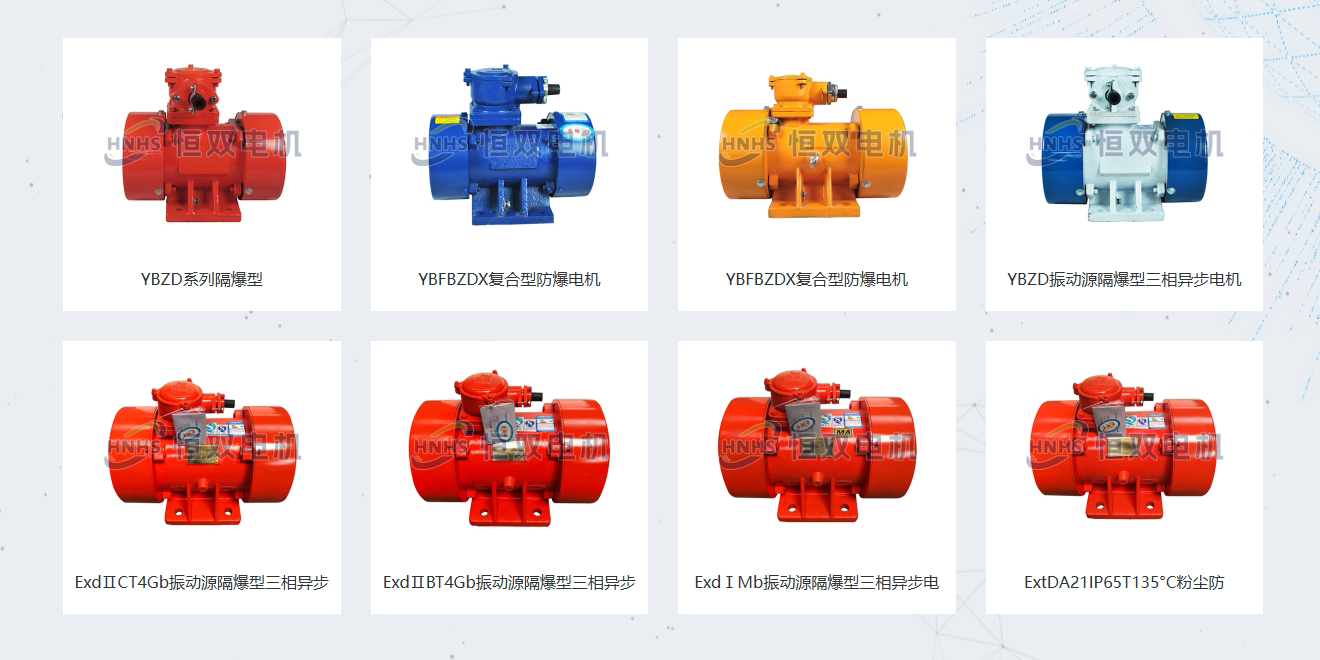 公司擁有一批精干的管理人員和一支高素質的專業技術團隊,技術力量雄厚、檢測手段精良齊全、管理體系完善。生產的防爆振動電機YBZD系列、 YBFBZDX系列的產品,可用于軍工、化工、冶金、礦山等行業,生產場所多為高危作業,如瓦斯、氣體、粉塵等,對防爆振動電機的要求高。公司產品特點:科技含量高、安全性能好、能耗低、體積小、質量輕、啟動迅速、停車平穩、安裝與維修方便等優勢,是振動給料機、振動篩、振動落砂機振動運輸機、振動選礦機、料倉防閉塞裝置等方面的佳選。產品配套于全國各地設備生產廠家,并且隨設備出口到印度、尼泊爾等多個國家,受到了國內與國際友人的青睞與好評。