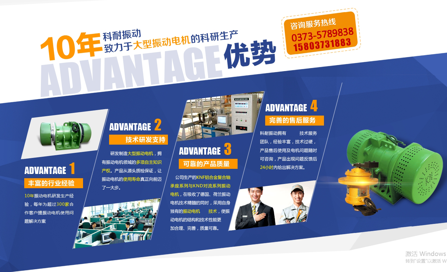 新鄉市科耐振動機械有限公司是一家專業研發制造大型振動電機的科研生產企業,擁有振動電機領域的多項自住知識產權。公司堅持企業、科研相結合的企業技術發展戰略,同多家科研單位和院校保持密切的聯系和合作。公司生產的KNF鋁合金復合軸承座系列與KND對流系列振動電機,在吸收了德國、荷蘭振動電機技術精髓的同時,采用自身專業的振動電機技術,使振動電機的結構和技術性能更加合理、完善,讓振動電機的使用壽命真正向前邁了一大步。