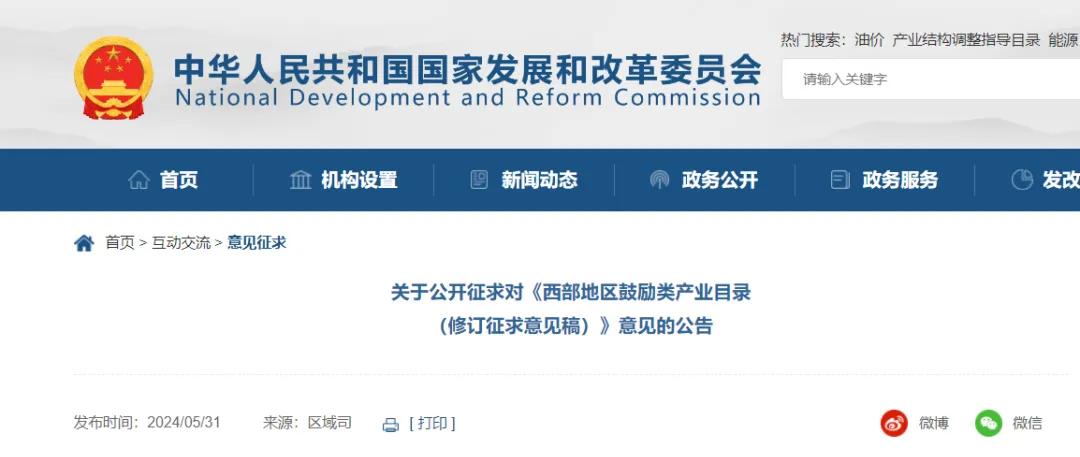 2024年5月31日,國家發展改革委發布了《西部地區鼓勵類產業目錄(修訂征求意見稿)》,該目錄中涉及大量粉體材料、技術、裝備以及下游產品。據了解,該目錄由國家現有產業目錄中的鼓勵類產業和西部地區新增鼓勵類產業結合產生,這充分體現了西部地區對東部地區重點產業承接的姿態,因此它也代表了粉體行業發展的重要方向。