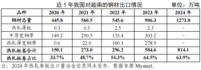 2024年我國出口到越南的鋼材1273.8萬噸,越南是我國鋼鐵第一大出口目的地。