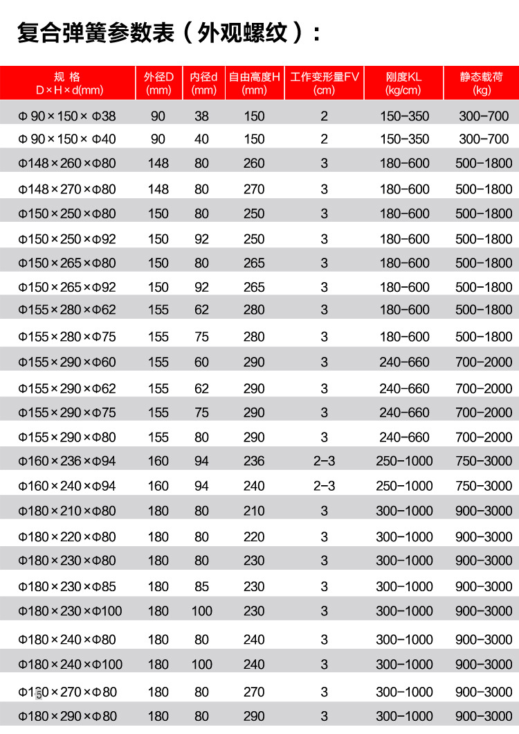 復合彈簧: 型號齊全